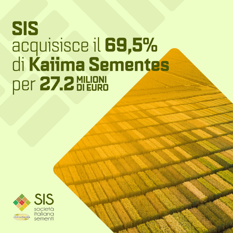S.I.S. Società Italiana Sementi S.p.A. (SIS), ha firmato contratti per acquisire il 69,5% del capitale sociale di Kaiima Sementes S.A. (KAIIMA), una società brasiliana specializzata in semi di ricino.